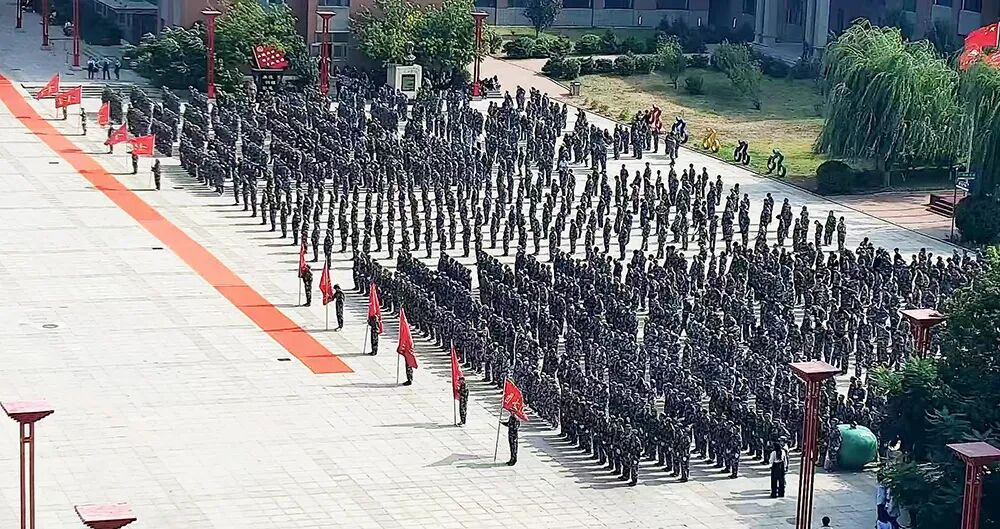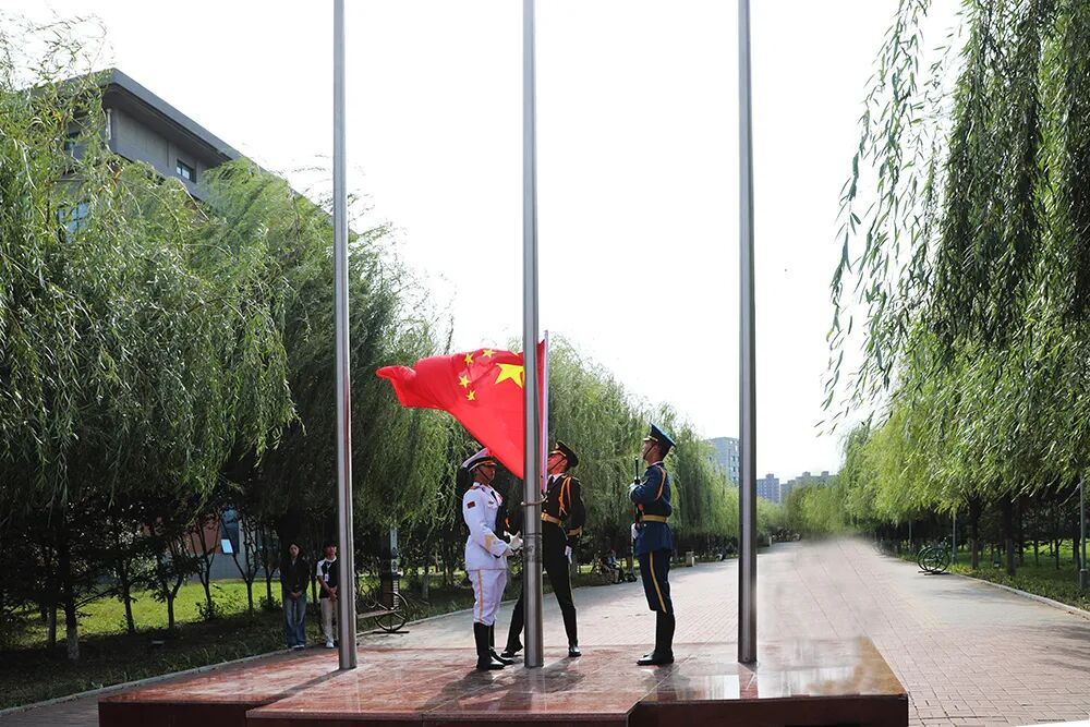 The ceremony commenced with the solemn flag-raising ceremony,all attendees standing in silent tribute as the majestic national anthem resonated across the campus.Subsequently,the Military Training Regimental flag advanced towards the rising sun,marking the official start of the review of the troops and the march-past.The 2025 freshmen,clad in neat military attire,marched past the rostrum with vigorous and resolute steps,demonstrating their vibrant spirit and excellent military training results.During the special performance drill team display,the freshmen won rounds of applause with their skilled movements and high morale.