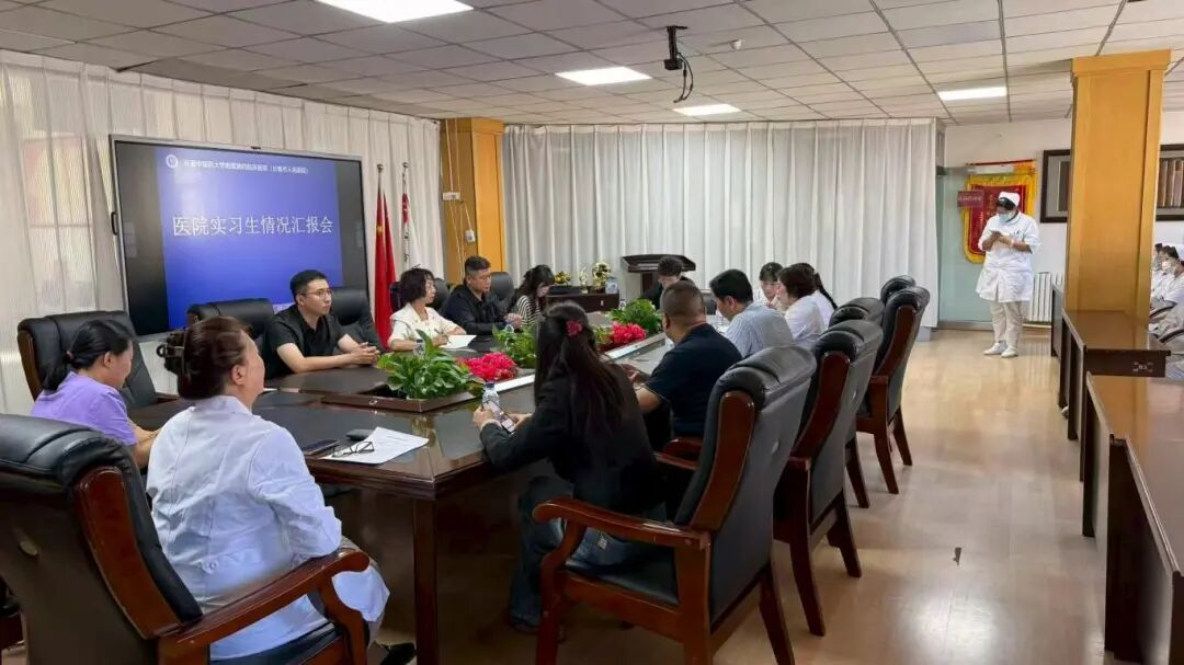 On the morning of September 18,Dean Zhang Xu led the team to Changchun Hospital of Traditional Chinese Medicine.A symposium was held with hospital leadership and representatives from the Nursing Department to discuss the internship situation of the college's first cohort of nursing students,who also attended the meeting.During the symposium,students actively shared their internship gains and growth reflections.The hospital recognized the overall performance of JCVC's interns and expressed interest in collaborating with JCVC to establish a two-way teaching model of"bringing classrooms into the hospital and mentors into the campus."This aims to facilitate clinical teachers stepping onto the academic podium and promote students'early,frequent,and repeated clinical exposure.After the meeting,Dean Zhang Xu communicated face-to-face with the students,Get a detailed understanding of their work,study,and living conditions.,emphasized internship safety,instructed students to strictly adhere to operational procedures and follow hospital arrangements,while encouraging them to study diligently,ask questions,and cherish the internship opportunity.He reminded them to communicate promptly with college teachers if encountering difficulties,assuring them that the college remains their strong backbone.