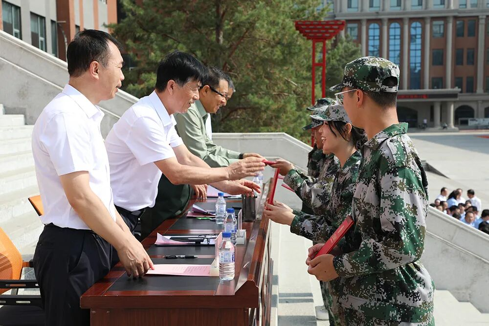 To commend excellence and set examples,the assembly announced the commendation orders for the advanced collectives and individuals of the 2025 student military training.Representatives from the outstanding drill teams,special performance drill teams,dormitory hygiene pacemakers,and training pacemakers came onto the stage to receive awards.Leaders presented honorary certificates to the awarded collectives and individuals,encouraging all freshmen to take the exemplars as benchmarks and continue to temper their will and character.
